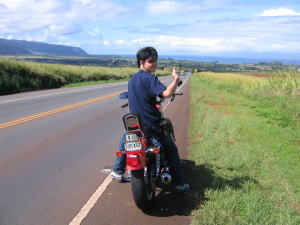 ノーヘルでフリーウェイをかっ飛ばし、ワイキキビーチからノースショアまでおよそ2時間の旅