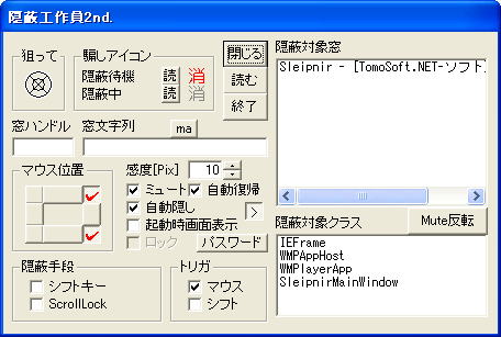 - 隠したウィンドウを再表示する際のパスワードによるロック