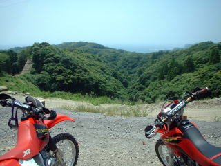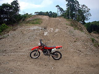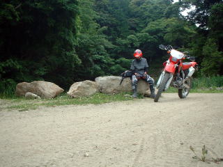 こんな坂道とか。写真で見ると結構緩やかに見えますが、実際は結構急です。ちなみにむらともXR250はここでコケてブレーキレバーが逝きました。なんまいだ。