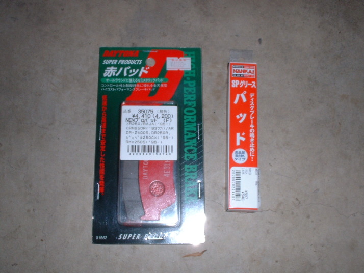 いやー、台風ってやつはすごいね。今まで見たことも無いくらいの勢いで雨をたたき付けてくのね。ドガーーーって。でね、最近ブレーキフルードの減りがなんとなく気にって居たのよ。で、チラっとパッドを見たら、結構減ってたのよね。あと1mmちょっとかな〜って。そろそろ変え時かなと思って金欠ながら変えてみました。 |