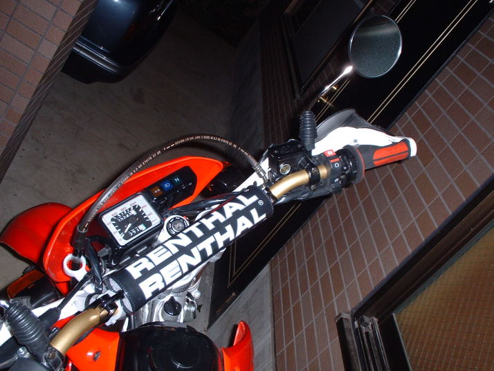 それにあわせて某ナップスではオフロードセール開催中だったので、すでに1万キロ以上を使用してきたボロボロのグリップを換えてあげました。やっぱし使ってると擦り切れるのね、新品に替えてから握りなおしてみると、その太さに悦! |