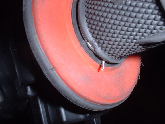で、このままだとグローブに突き刺さってしまうので、先をうまーく丸めます。ラジオペンチで先っちょをグリップに突き刺さる方向に曲げるんですね。すると綺麗に見えなくなります。 |