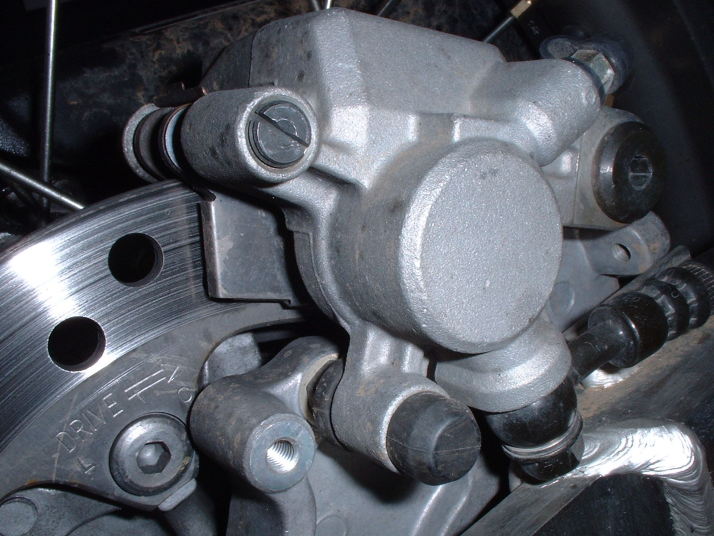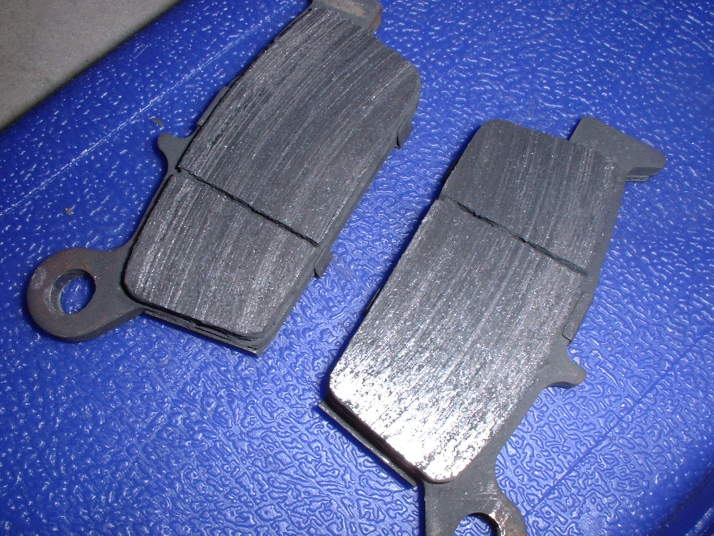 あとは、鳴き防止にパッド裏にうっすらとグリース(できれば耐熱?)を塗布したげます。間違ってもディスク面に塗布しないように。死にます。 |