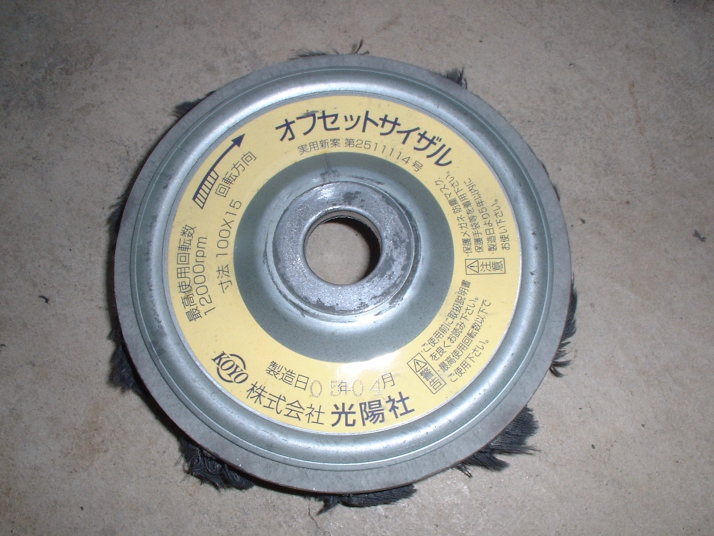 このディスクをグラインダにつけてチョロっと磨いてみます。 |