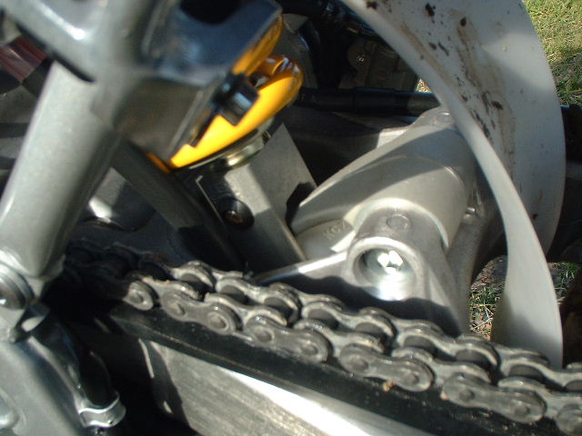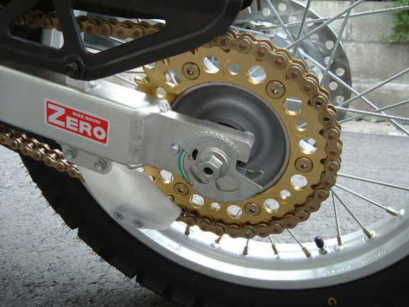 これまたゴールデンコンビのスプロケ&チェーン♪モタードホイールに映えますなぁ。しかしリムまで黒とは。なんてカッコいいんだ! |