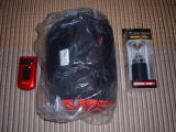 左の赤いのから、オレの携帯、アリーバNEO−250、LEDランタン、そしてなんかアルミの椅子。